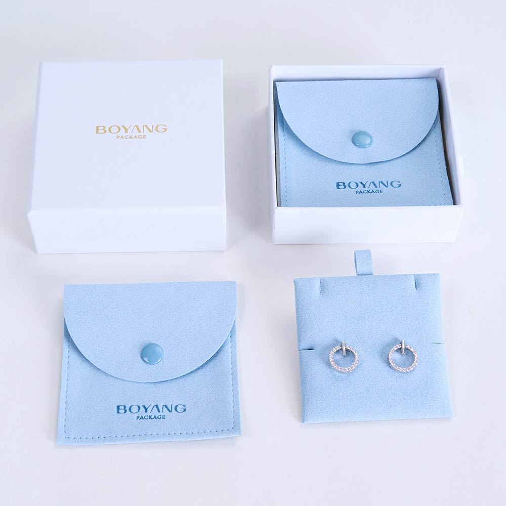 Handmade customized logo printed suede jewelry pouch bag with button for gift |