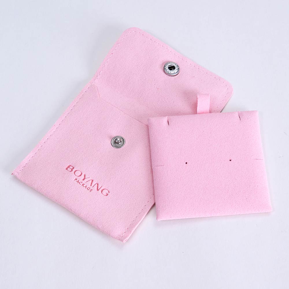 Pink custom logo small snap button suede jewelry bag microfiber jewelry pouch with insert pad |