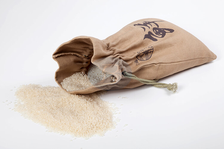 Jute rice packaging bags factory, the carefully selected materials, the concise and reasonable design, the clear logo printing.